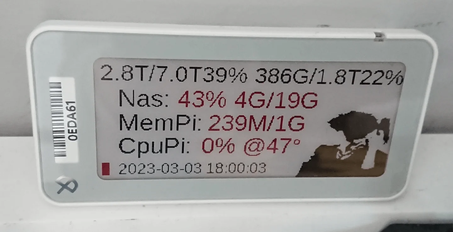 我把这个程序跑在我的树莓派上,然后Nas上设置了一个定时任务,每隔一段时间就推送信息到树莓派上,然后树莓派再通过蓝牙把信息发送给墨水屏。