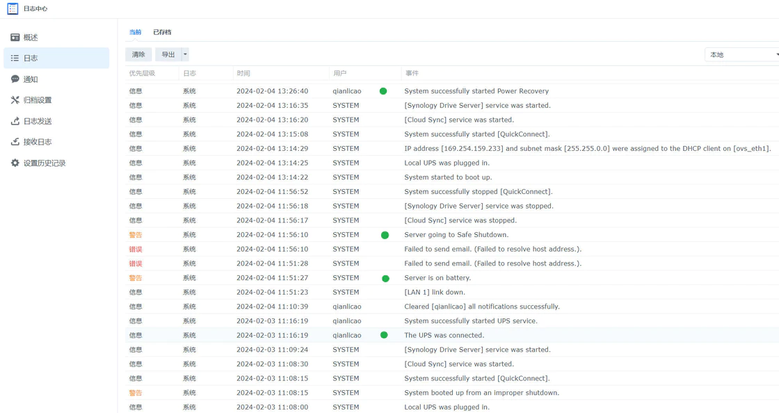 - 2023年8月,设备所在县城因为电网压力频繁断电,设备不得不关机一段时间(2024 年 1 月,再次频繁地断电、电压不稳后,怒下单了一台 UPS)。