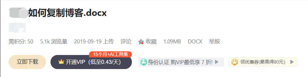 在一个技术论坛社区网站上传一个 Docx 文档,再让我付费下载,绝